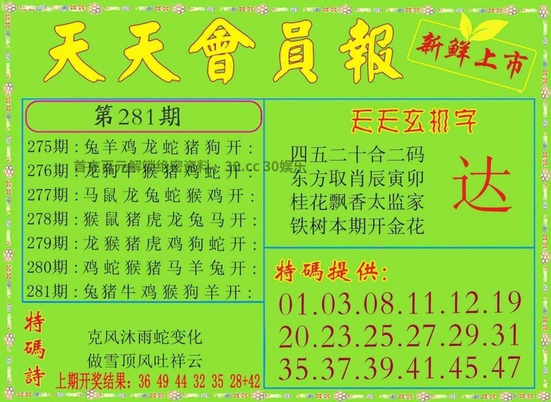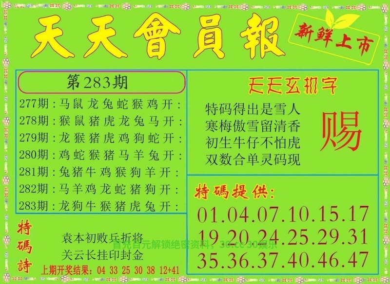 287期:╠平特一尾╣【$$$$】开:發00准 |